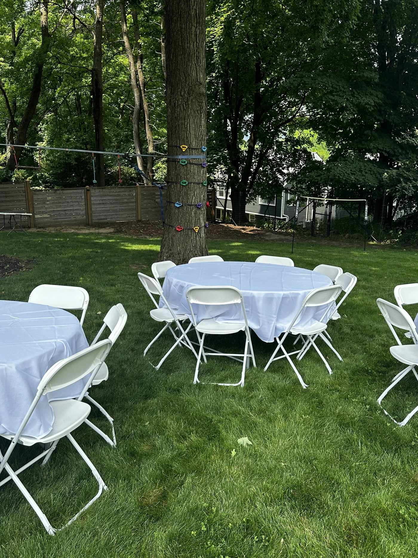 At Fun Tables and Chair Rentals, we provide a wide variety of chairs and tables to suit any event. Our inventory includes folding chairs, banquet chairs, cocktail tables, and rectangular and round tables in various sizes. We also offer specialty items to meet your unique event needs.